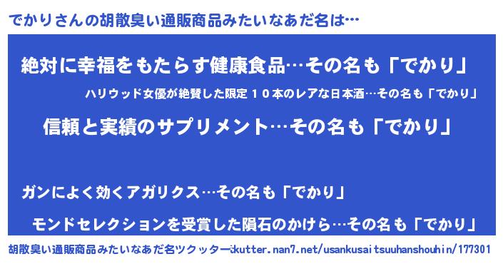 | 意味不明あだ名 | 『とにかく怪しいでかり』 |
