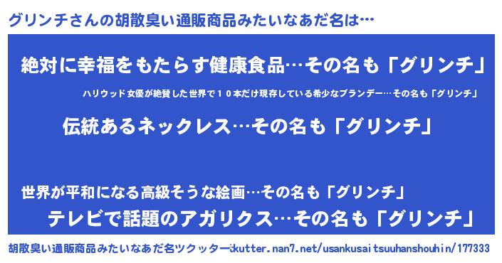| ヘコむあだ名 | 『グリっ子』『グリンチ(爆)』 |