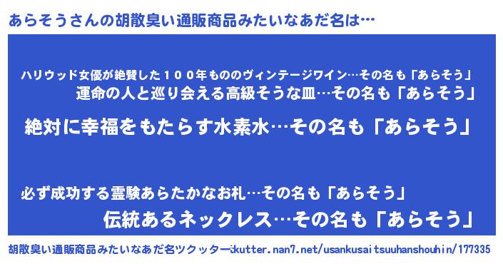 | ヘコむあだ名 | 『あらそう(震え声)』『あらを』 |