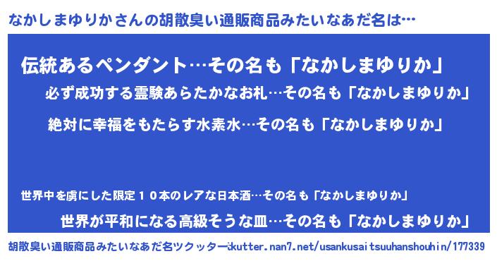 | ヘコむあだ名 | 『なかしまゆりか(遠い目)』『なかっちょ』 |