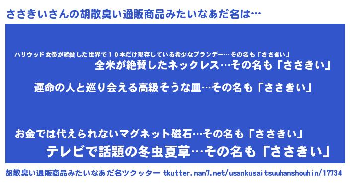 | 意味不明あだ名 | 『ささきいフォーエバー』『自称ささきい』 |