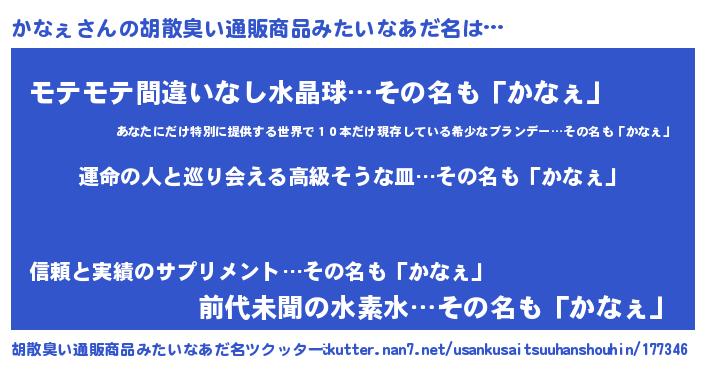 | 意味不明あだ名 | 『かなぇフォーエバー』『ペロリンかなぇ』 |