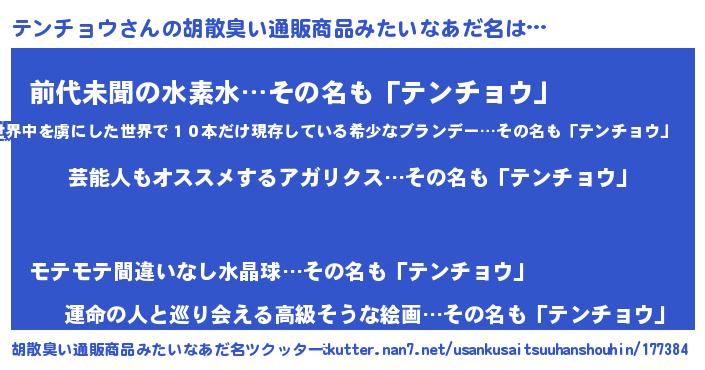 | 意味不明あだ名 | 『自称テンチョウ』『永久保存テンチョウ』 |
