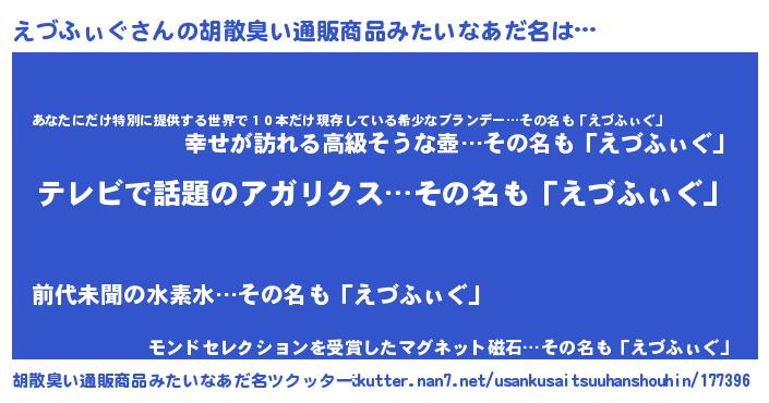 | 男性向けラノベタイトル風あだ名 | 『Re:えづふぃぐから始める異世界生活』 |