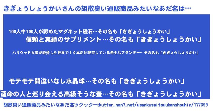 | 欧米人風あだ名 | 『アンジェラ・きぎょうしょうかい』 |