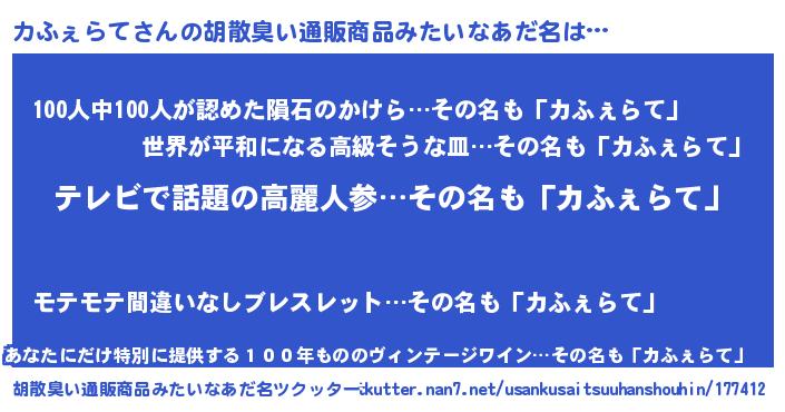 | 肩書あだ名 | 『カふぇらて閣下』『カふぇらて船長』 |