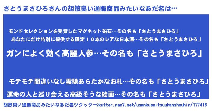 | 意味不明あだ名 | 『自称さとうまさひろ』 |