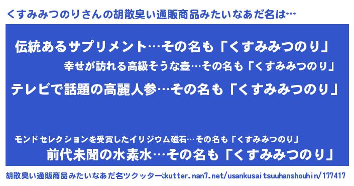 | 意味不明あだ名 | 『自称くすみみつのり』 |