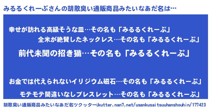 | 意味不明あだ名 | 『永久保存みるるくれーぷ』 |