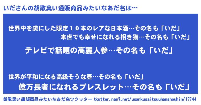 | 意味不明あだ名 | 『自称いだ』『住所不定無職いだ(98歳)』 |