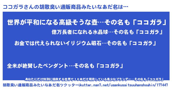 | ヒーロー風カッコイイあだ名 | 『友情の使者ココガラ』『仮面ココダー』 |
