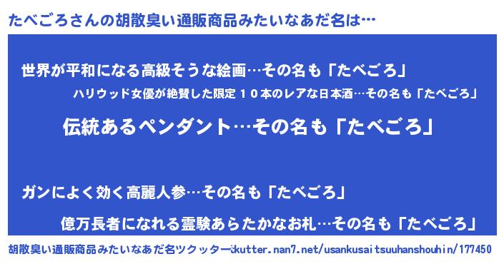 | 意味不明あだ名 | 『とにかく怪しいたべごろ』 |