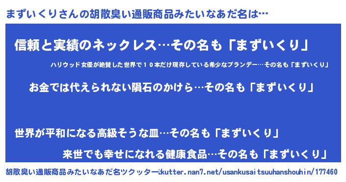 まずいくりさんの胡散臭い通販商品みたいなあだ名をツクッター!