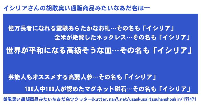 | 男性向けラノベタイトル風あだ名 | 『はたらくイシリアさま!』 |