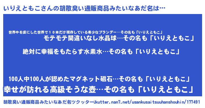 | ヘコむあだ名 | 『いりえともこ(苦笑)』『豆乳』 |