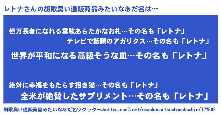 レトナさんの胡散臭い通販商品みたいなあだ名をツクッター!