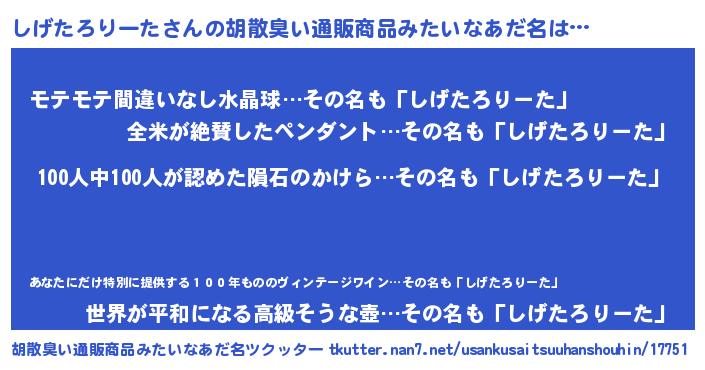 | ヘコむあだ名 | 『しげっふぃ~』『牛乳』『しげを』 |