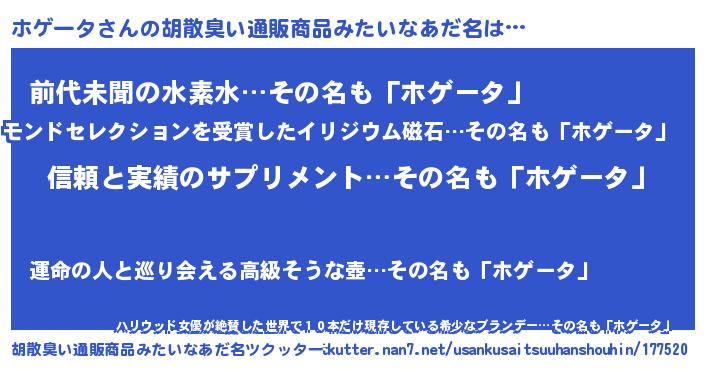 | ヒーロー風カッコイイあだ名 | 『黄金騎士ホゲ』『ネオホゲータ』 |
