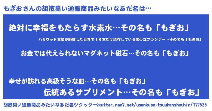 | ヘコむあだ名 | 『もぎお(笑)』『もぎっちょ』 |