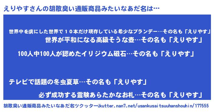 | ヒーロー風カッコイイあだ名 | 『正義の使者えりやす』『仮面エリダー』 |
