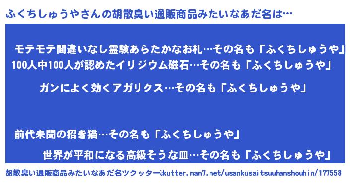 | 肩書あだ名 | 『ふくちしゅうや閣下』 |