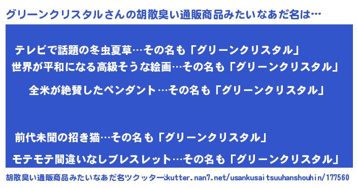 | 欧米人風あだ名 | 『ウサイングリーンクリスタル』 |