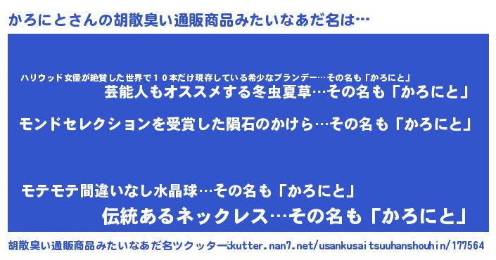 | 欧米人風あだ名 | 『ダニエルかろにと』『ウサインかろにと』 |