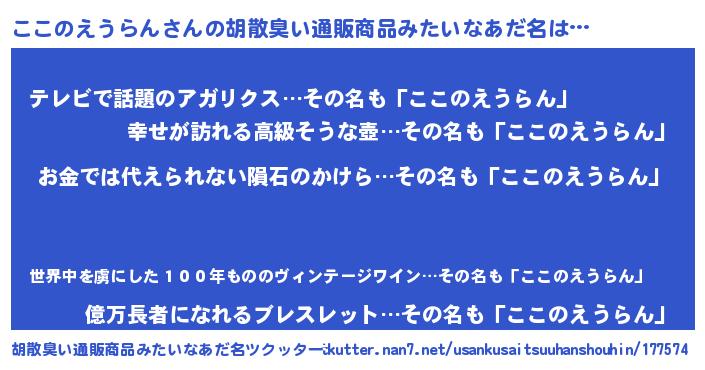 | 意味不明あだ名 | 『眠気覚ましガムここのえうらん味』 |