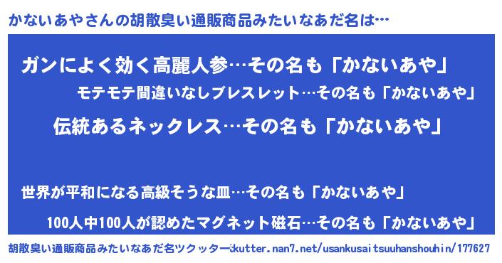 | 意味不明あだ名 | 『とにかく怪しいかないあや』 |