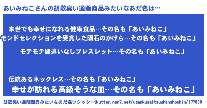 | ヘコむあだ名 | 『あいにー』『あいみねこ(爆)』 |