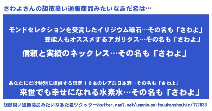 | 意味不明あだ名 | 『しいたけ科さわよ属』『永久保存さわよ』 |