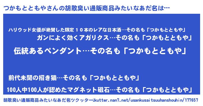 | 意味不明あだ名 | 『とにかく怪しいつかもとともや』 |