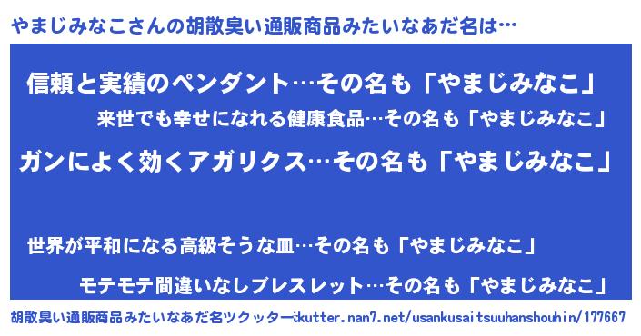 | 意味不明あだ名 | 『自称やまじみなこ』 |