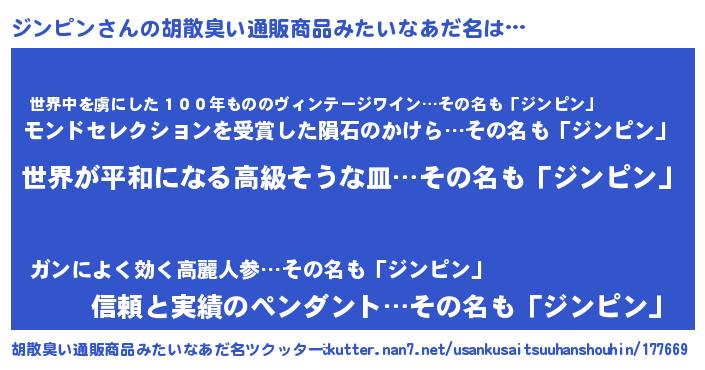 | 意味不明あだ名 | 『ジンピンフォーエバー』『自称ジンピン』 |