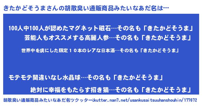 | 意味不明あだ名 | 『住所不定無職きたかどそうま(47歳)』 |