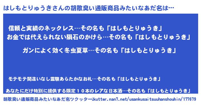 はしもとりゅうきさんの胡散臭い通販商品みたいなあだ名をツクッター!