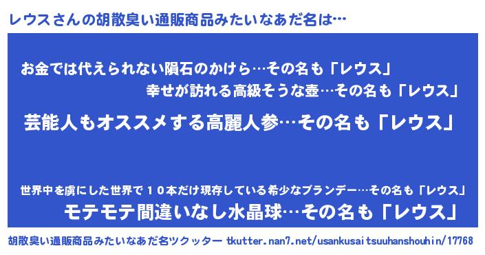 | ヒーロー風カッコイイあだ名 | 『最強戦士レウス』『愛の使者レウス』 |