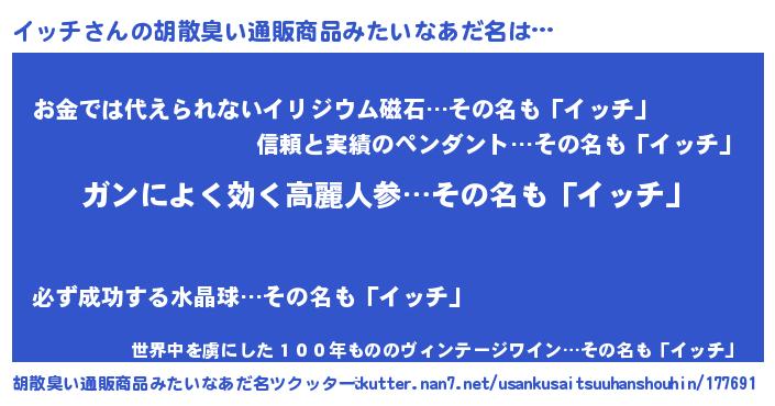 | 女子向けラノベタイトル風あだ名 | 『イッチアンティーク』『イッチ恋絵巻』 |