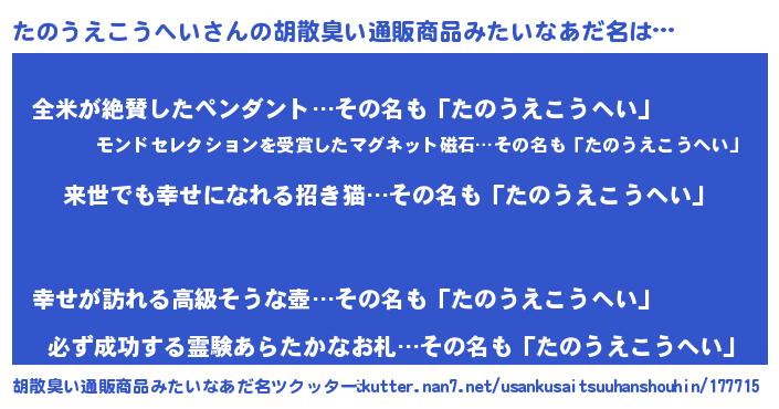 ヘコむあだ名 | 『たのうえこうへい(笑)』『たのっちょ』 |