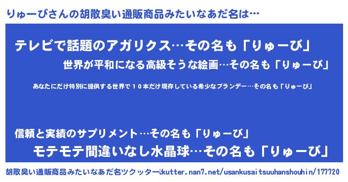| 意味不明あだ名 | 『住所不定無職りゅーび(81歳)』 |