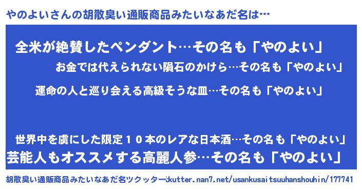 | 女子向けラノベタイトル風あだ名 | 『やのよいの婚約者』『やのよい恋絵巻』 |