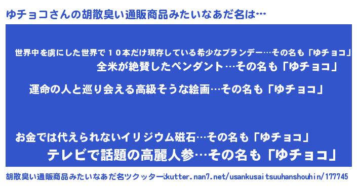 | 意味不明あだ名 | 『つくし科ゆチョコ属』『自称ゆチョコ』 |