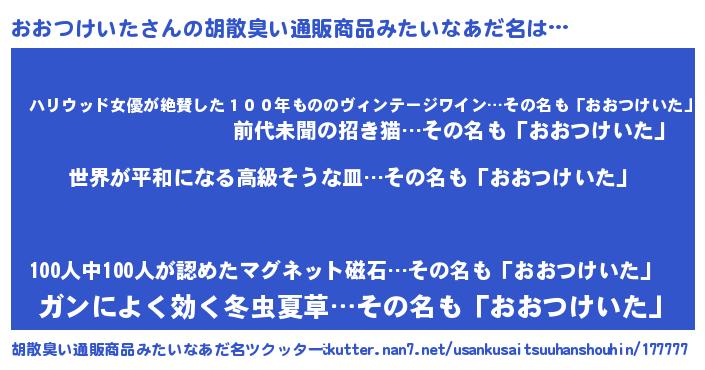 | 意味不明あだ名 | 『おおつけいたフォーエバー』 |