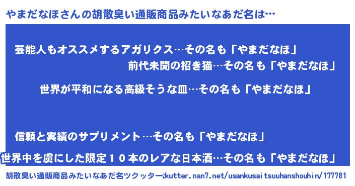| ヘコむあだ名 | 『なまこ酢』『やまだなほ(苦笑)』 |