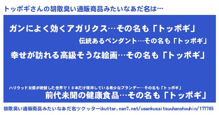 | 恥ずかしいあだ名 | 『トッっちょ』『トッポギデラックス』 |