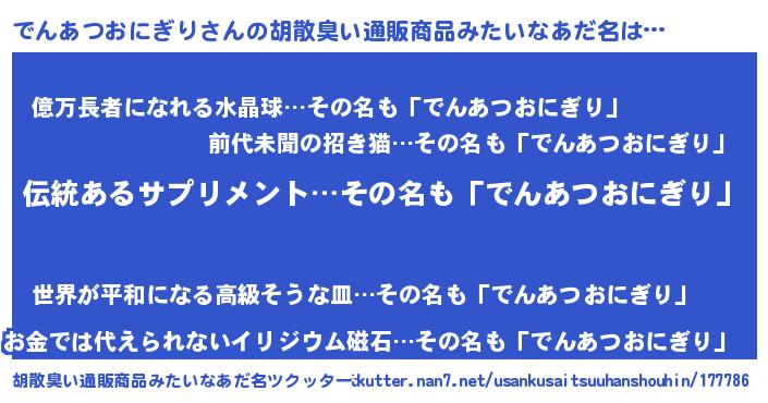 | 欧米人風あだ名 | 『アンジェラ・でんあつおにぎり』 |
