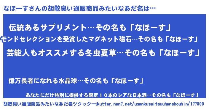 | ヒーロー風カッコイイあだ名 | 『究極戦士ナホース』『銀牙騎士ナホ』 |