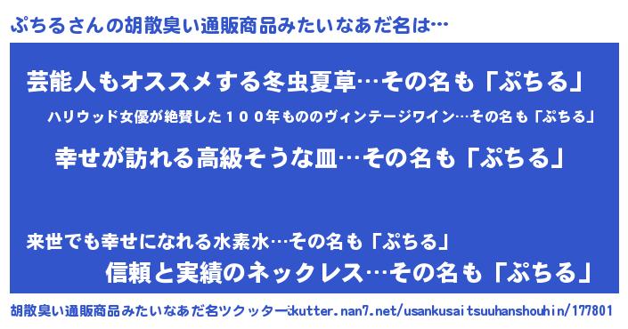 | 意味不明あだ名 | 『ぷちるフォーエバー』『自称ぷちる』 |