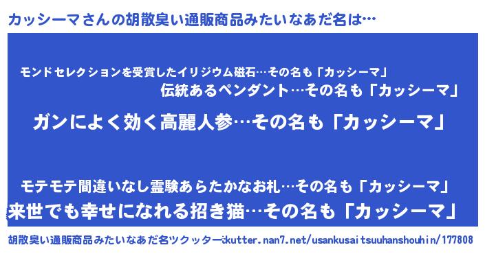 | 意味不明あだ名 | 『自称カッシーマ』『永久保存カッシーマ』 |