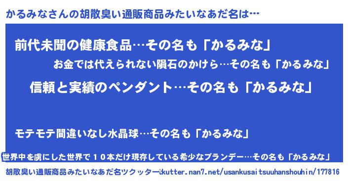 | 可愛いあだ名 | 『かっるぃー』『かるみなママ』 |